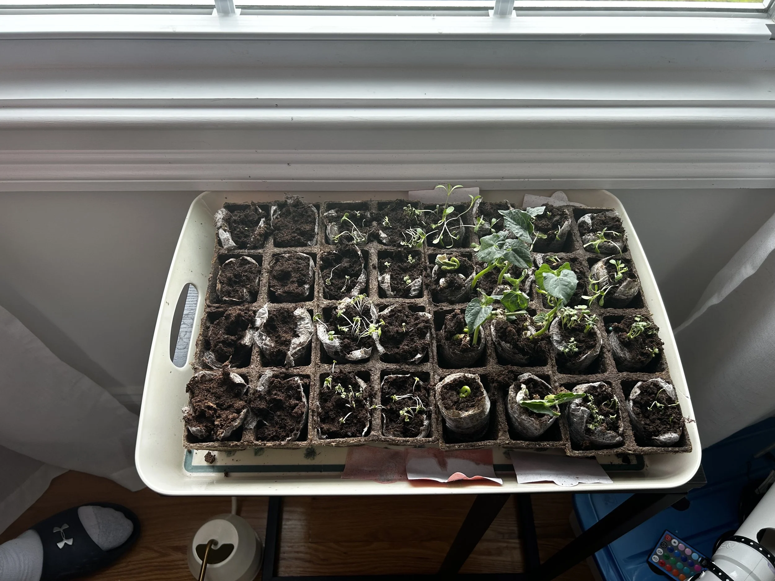 I'm thrilled to report that the basil in my garden has shown remarkable progress. The stalks have noticeably strengthened, standing tall and sturdy, while the leaves have grown substantially larger. I couldn't be happier with how well my basil is flourishing. Also, my beans are growing at astonishing speeds; they're practically racing upwards. I might need to provide them with some support to keep them climbing steadily and not flop over.